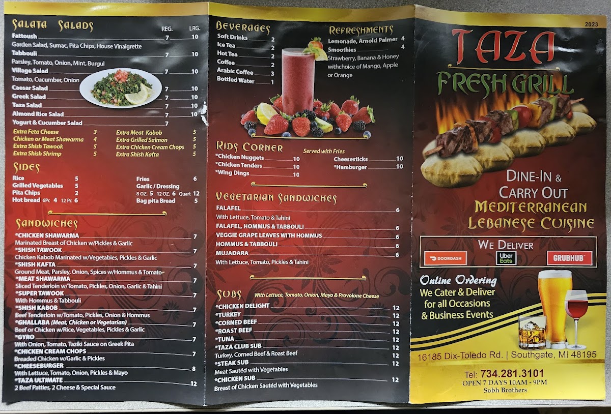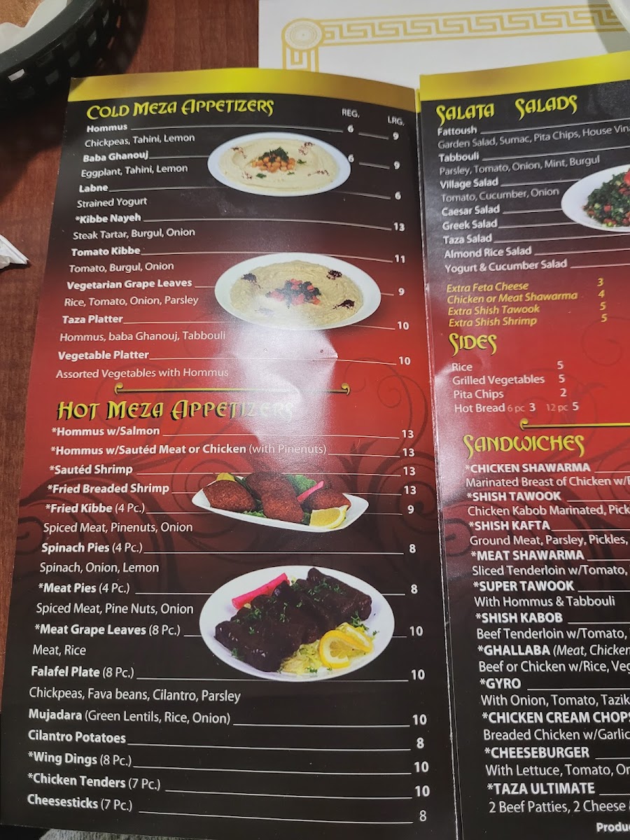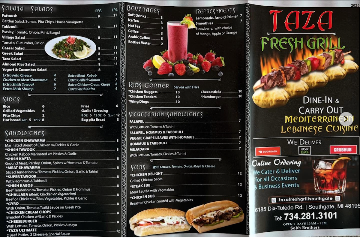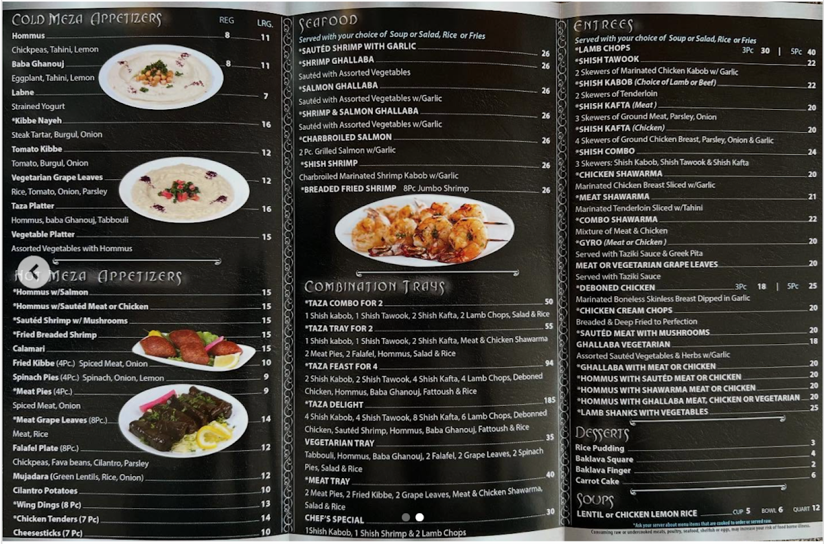 At Taza Fresh Grill, we bring a flavorful fusion of traditional Mediterranean dishes with a modern twist. With every bite, you’ll experience a satisfying mix of grilled meats, fresh salads, and hearty sides. The bold spices and unique marinades used in our dishes ensure each meal is bursting with flavor. Whether you're in the mood for a tender chicken shawarma, a juicy lamb kebab, or a flavorful falafel, Taza Fresh Grill Menu has something to delight every palate. Our menu also features a variety of veggie options, perfect for those who prefer lighter fare or follow plant-based diets. Each dish is crafted with the freshest ingredients to ensure a healthy yet delicious dining experience. Come explore our wide selection and discover your new favorite Mediterranean dish today.